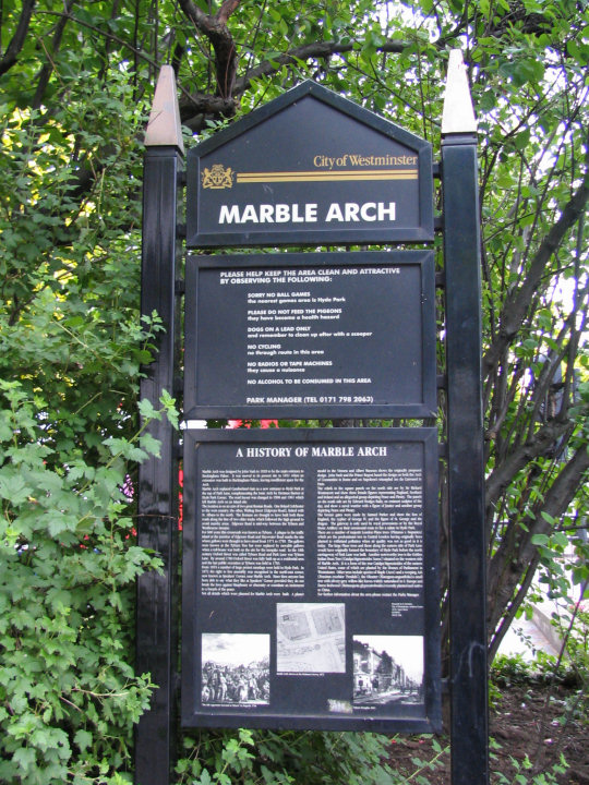 Původně sloužil jako hlavní vchod do Buckinghamského paláce. Protože byl pro velké kočáry příliš úzký, byl v r. 1851 přemístěn na dnešní místo.